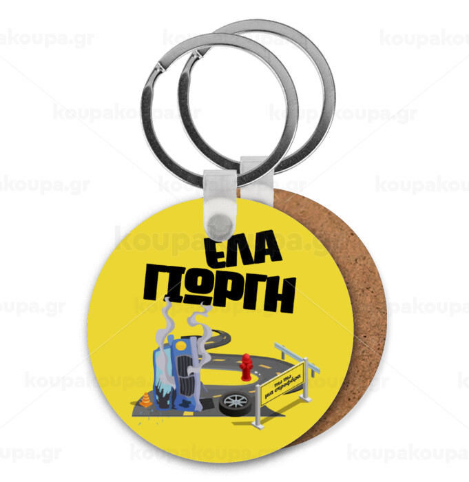 Έλα Γιώργη, πω πω μια στροφάρα, Μπρελόκ Ξύλινο στρογγυλό MDF Φ5cm