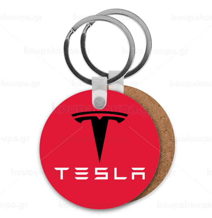 Tesla motors, Μπρελόκ Ξύλινο στρογγυλό MDF Φ5cm