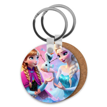 Elsa & Anna Princess, Μπρελόκ Ξύλινο στρογγυλό MDF Φ5cm