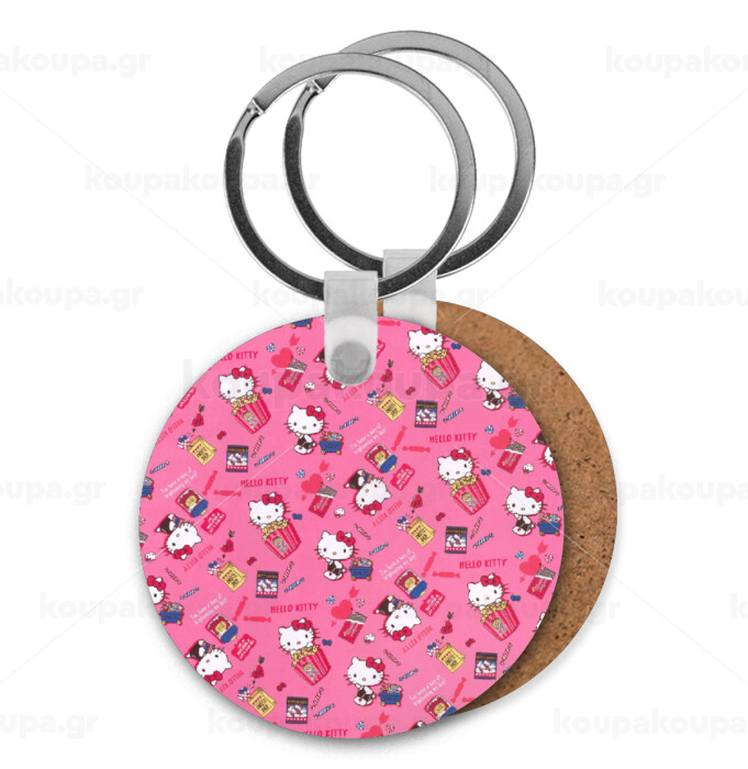 Hello kitty, Μπρελόκ Ξύλινο στρογγυλό MDF Φ5cm