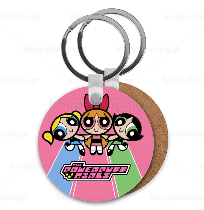 The powerpuff girls , Μπρελόκ Ξύλινο στρογγυλό MDF Φ5cm