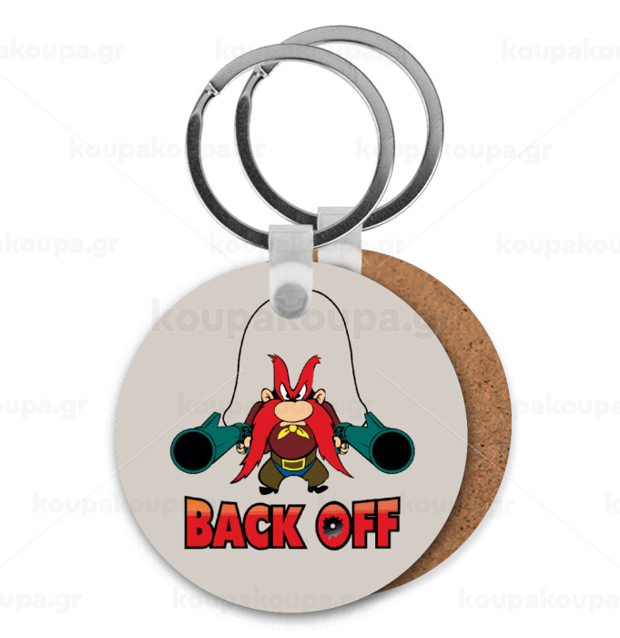 Yosemite Sam Back OFF, Μπρελόκ Ξύλινο στρογγυλό MDF Φ5cm