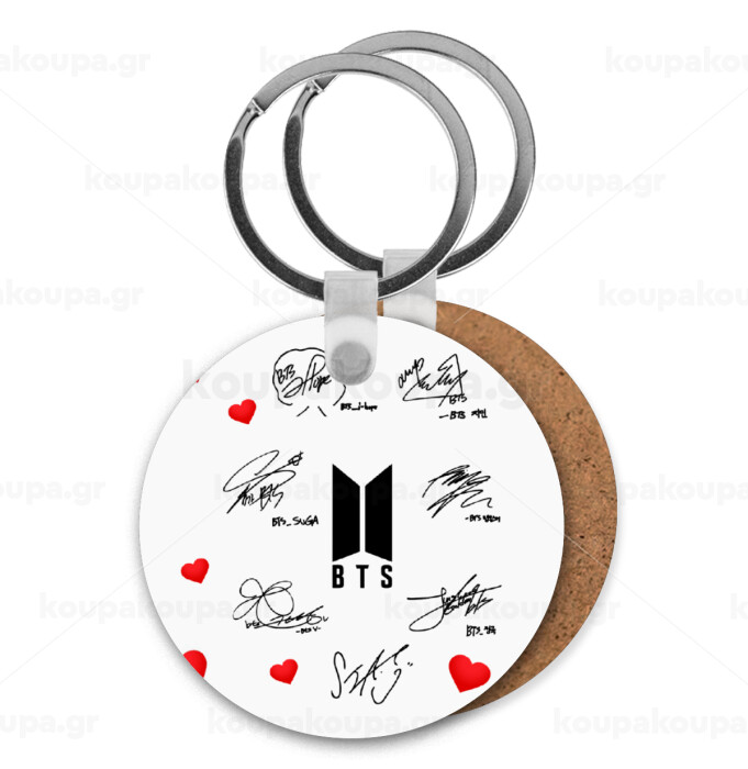 BTS signatures, Μπρελόκ Ξύλινο στρογγυλό MDF Φ5cm