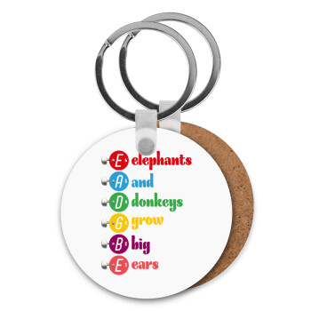 Elephants And Donkeys Grow Big Ears, Μπρελόκ Ξύλινο στρογγυλό MDF Φ5cm