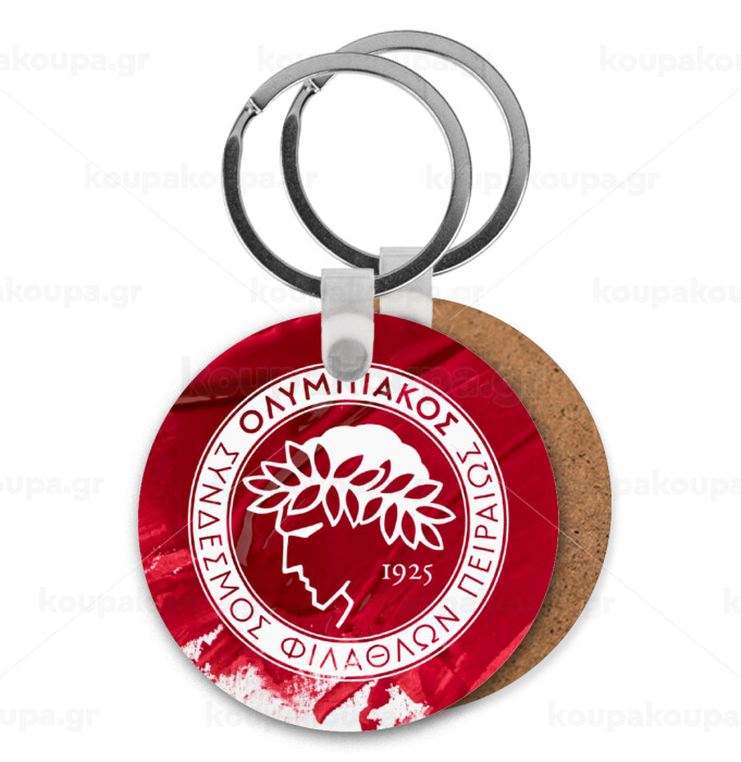 Olympiacos F.C., Μπρελόκ Ξύλινο στρογγυλό MDF Φ5cm