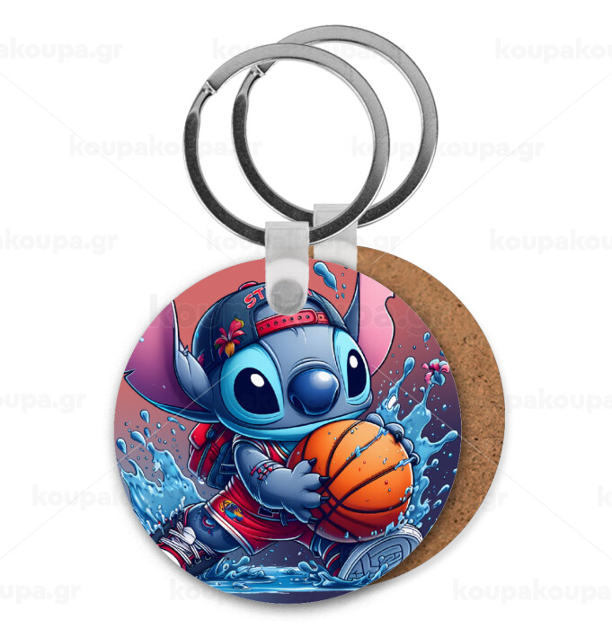 Stitch Basketball, Μπρελόκ Ξύλινο στρογγυλό MDF Φ5cm