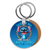 Stitch Touch Me And I Will Bite You, Μπρελόκ Ξύλινο στρογγυλό MDF Φ5cm