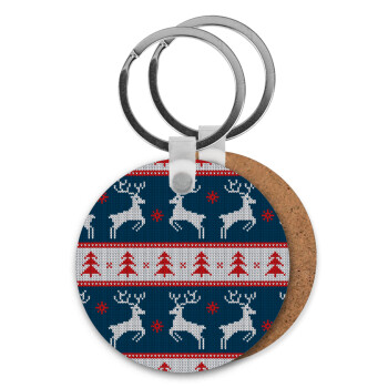 Deer knitted blue, Μπρελόκ Ξύλινο στρογγυλό MDF Φ5cm