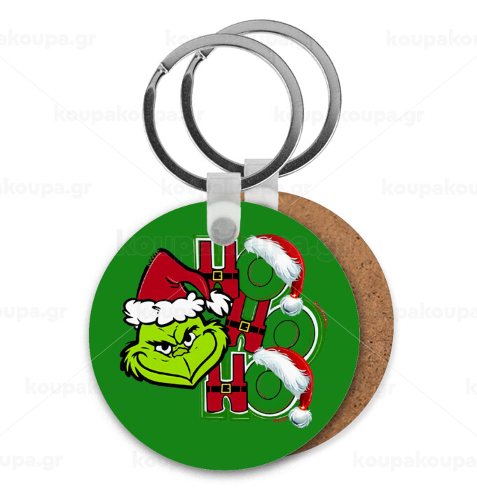 Grinch ho ho ho, Μπρελόκ Ξύλινο στρογγυλό MDF Φ5cm