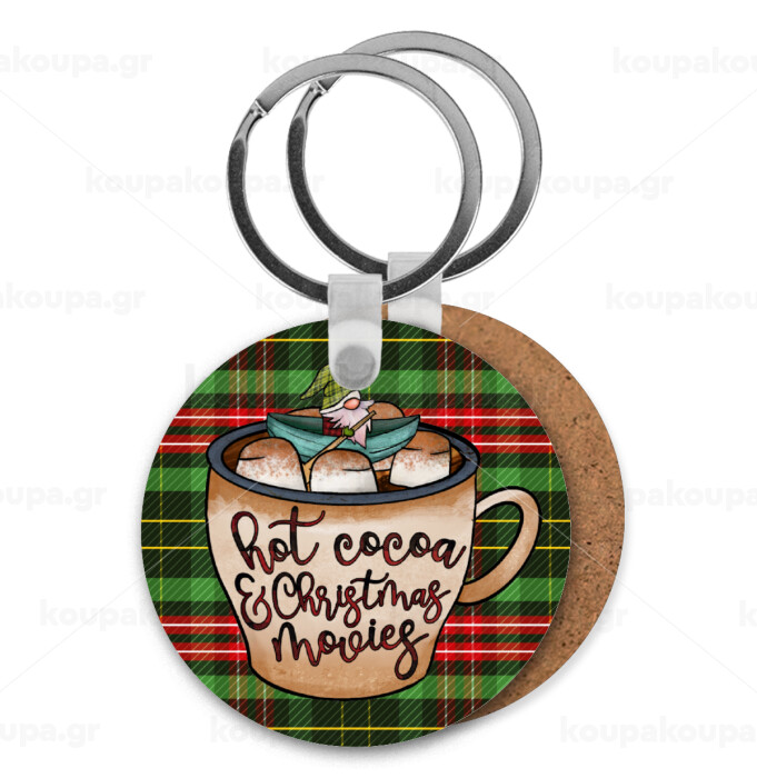 Hot Cocoa And Christmas Movies, Μπρελόκ Ξύλινο στρογγυλό MDF Φ5cm