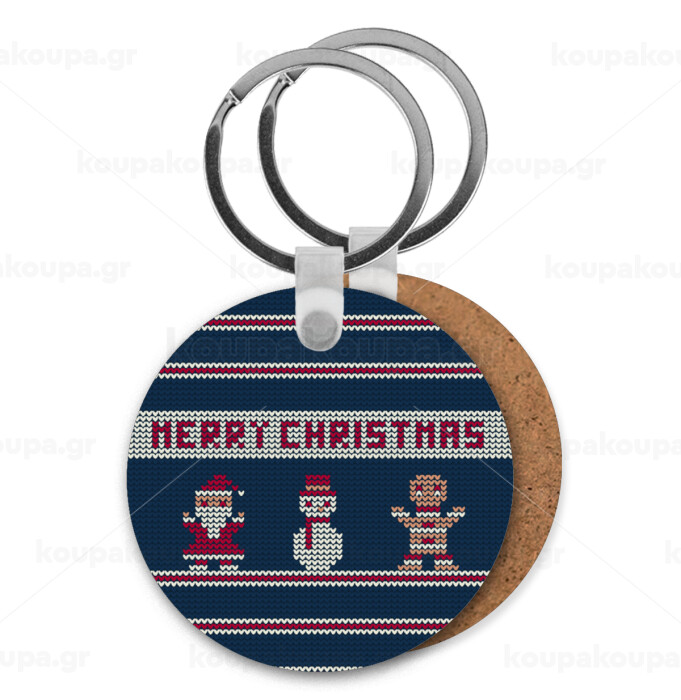 Merry christmas knitted, Μπρελόκ Ξύλινο στρογγυλό MDF Φ5cm