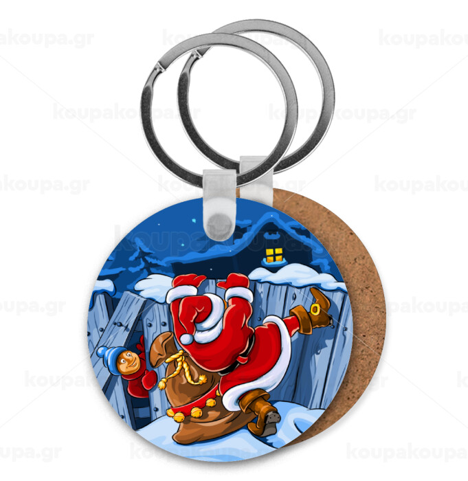 Santa Night, Μπρελόκ Ξύλινο στρογγυλό MDF Φ5cm