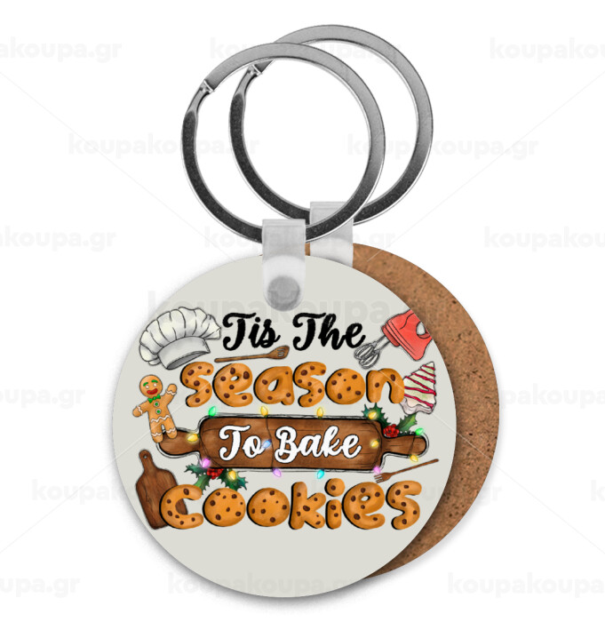 Tis The Season To Bake Cookies, Μπρελόκ Ξύλινο στρογγυλό MDF Φ5cm