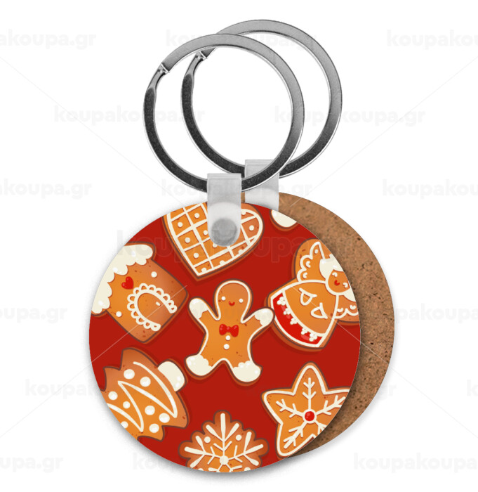 xmas cookies, Μπρελόκ Ξύλινο στρογγυλό MDF Φ5cm