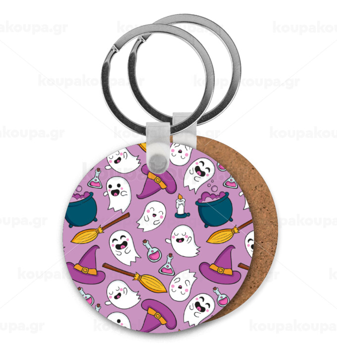 Happy Halloween pink, Μπρελόκ Ξύλινο στρογγυλό MDF Φ5cm