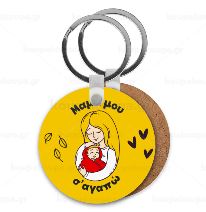 Μανούλα σ'αγαπώ αγκαλιά!, Μπρελόκ Ξύλινο στρογγυλό MDF Φ5cm