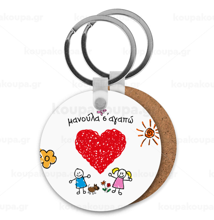 Μανούλα σ'αγαπώ!, Μπρελόκ Ξύλινο στρογγυλό MDF Φ5cm