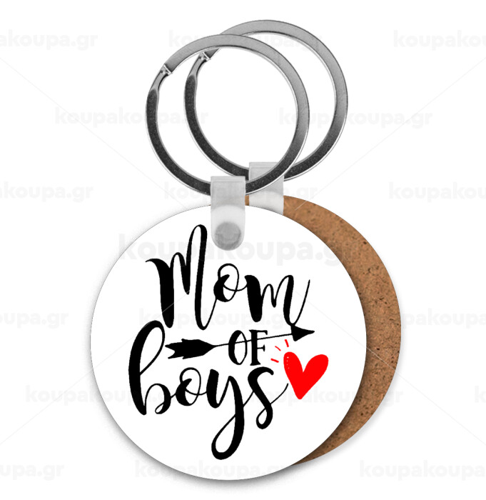 Mom of boys, Μπρελόκ Ξύλινο στρογγυλό MDF Φ5cm
