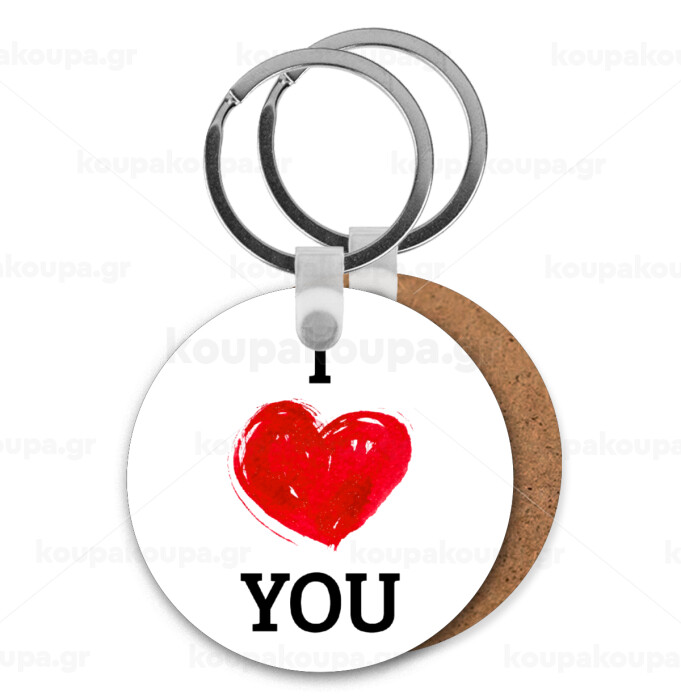 I Love You, Μπρελόκ Ξύλινο στρογγυλό MDF Φ5cm