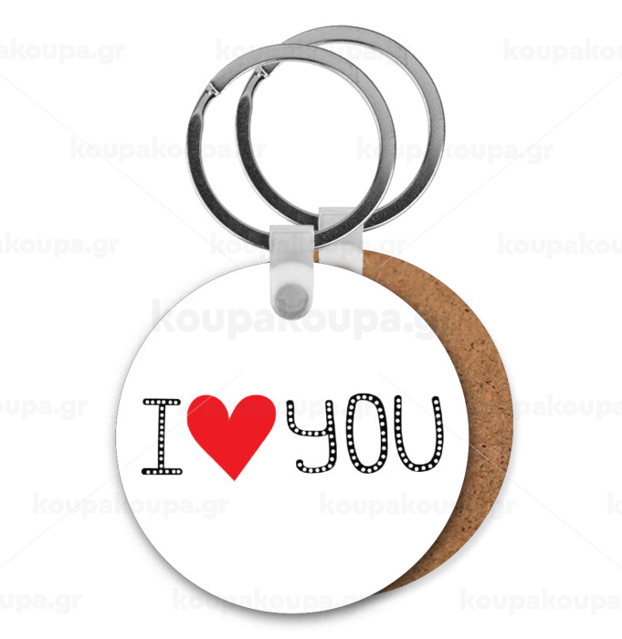 I Love You small dots, Μπρελόκ Ξύλινο στρογγυλό MDF Φ5cm