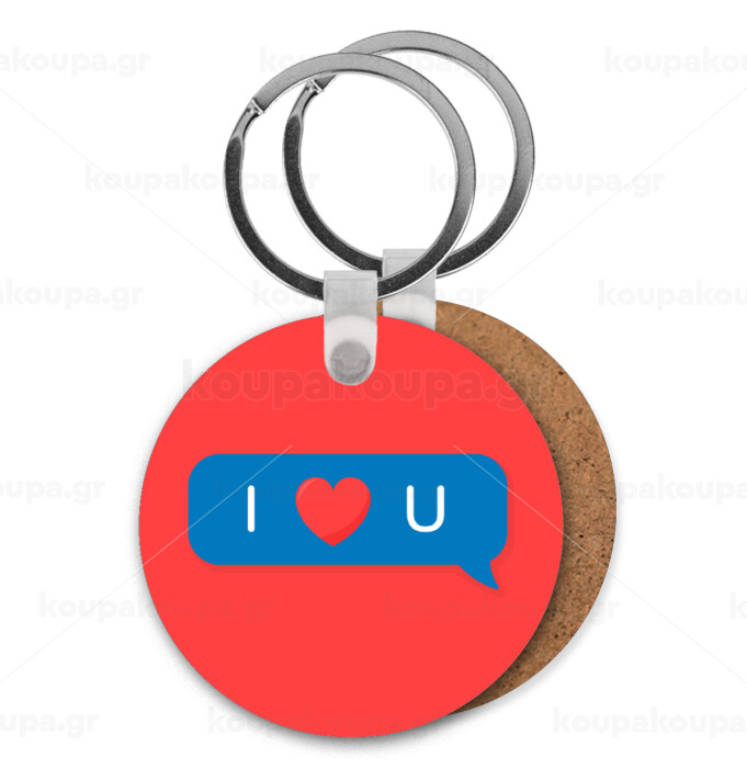 I Love You text message, Μπρελόκ Ξύλινο στρογγυλό MDF Φ5cm