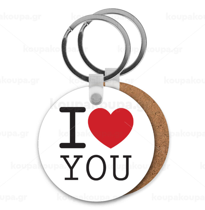I Love you classic, Μπρελόκ Ξύλινο στρογγυλό MDF Φ5cm
