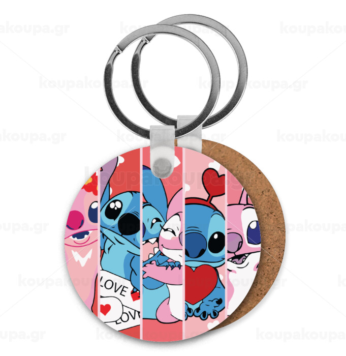 Lilo & Stitch Love, Μπρελόκ Ξύλινο στρογγυλό MDF Φ5cm