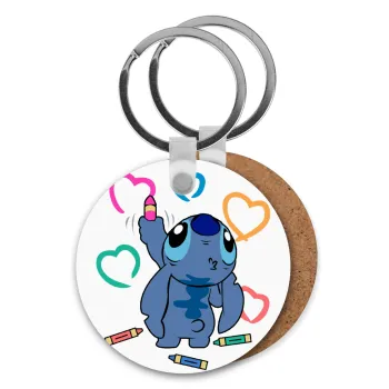 Lilo & Stitch painting, Μπρελόκ Ξύλινο στρογγυλό MDF Φ5cm