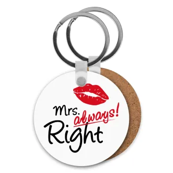 Mrs always right kiss, Μπρελόκ Ξύλινο στρογγυλό MDF Φ5cm