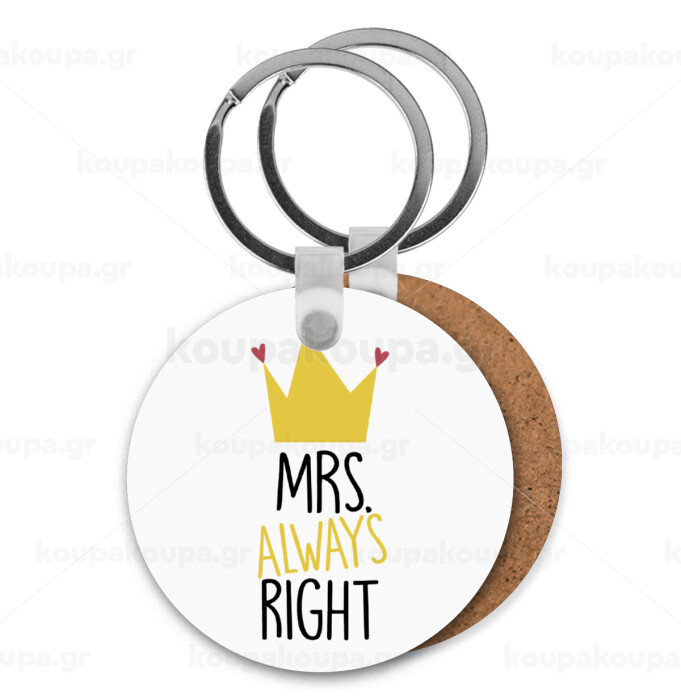 Mrs "Always" right, Μπρελόκ Ξύλινο στρογγυλό MDF Φ5cm