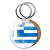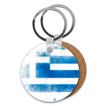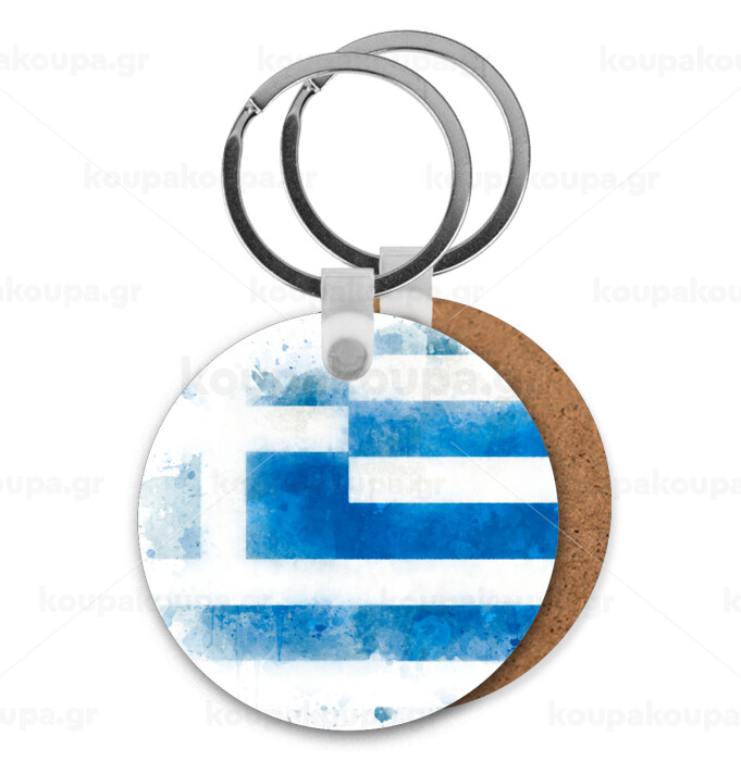 Ελληνική σημαία watercolor, Μπρελόκ Ξύλινο στρογγυλό MDF Φ5cm