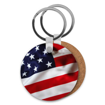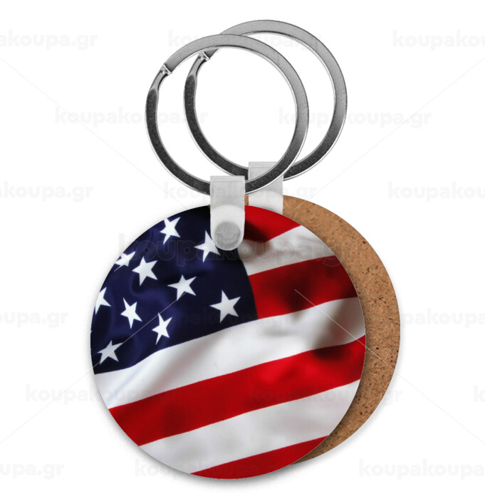 USA Flag, Μπρελόκ Ξύλινο στρογγυλό MDF Φ5cm
