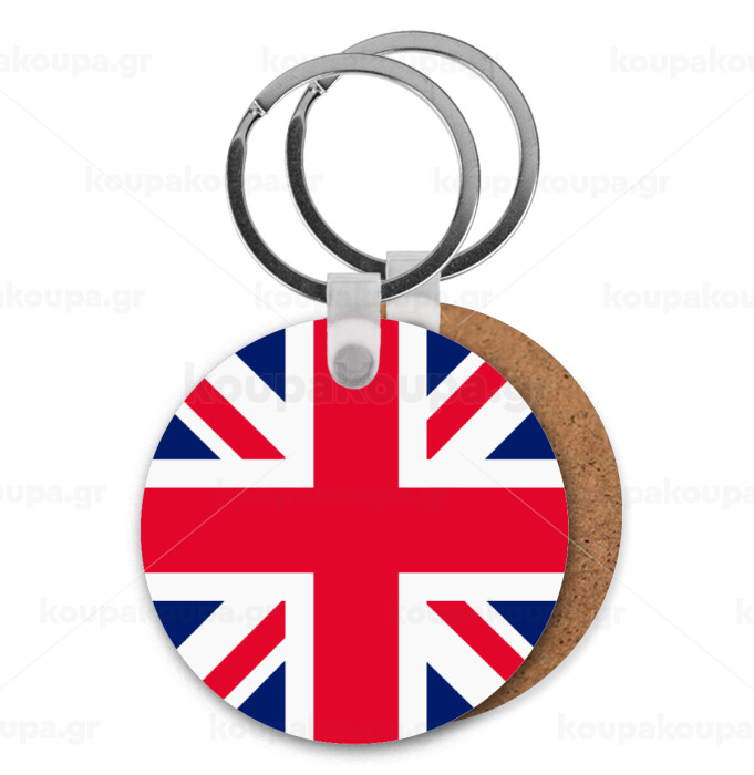 England flag, Μπρελόκ Ξύλινο στρογγυλό MDF Φ5cm