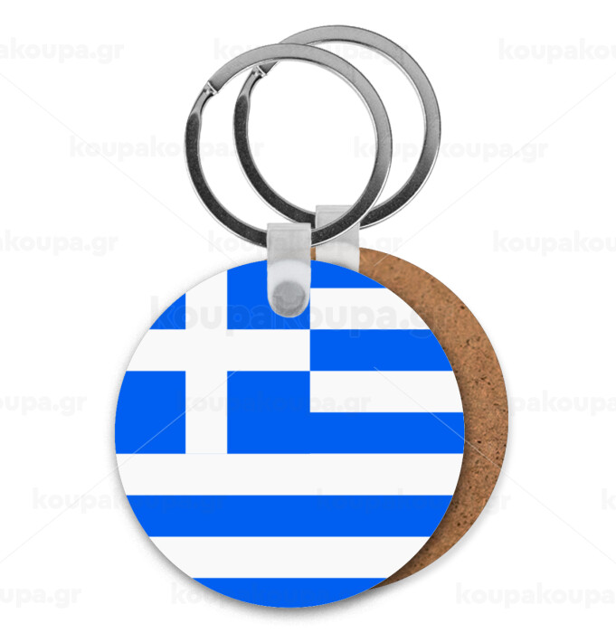 Greece flag, Μπρελόκ Ξύλινο στρογγυλό MDF Φ5cm