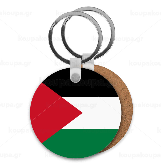 Palestine Flag, Μπρελόκ Ξύλινο στρογγυλό MDF Φ5cm