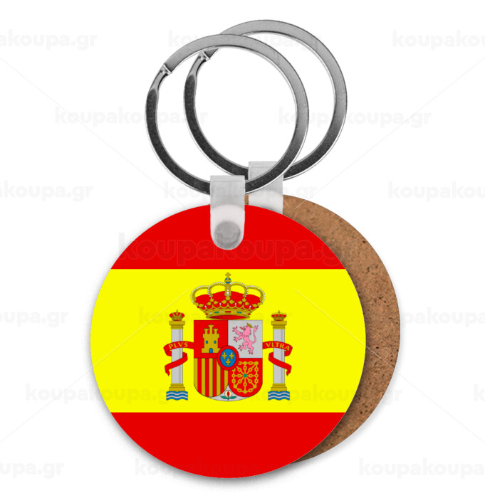 Spain flag, Μπρελόκ Ξύλινο στρογγυλό MDF Φ5cm