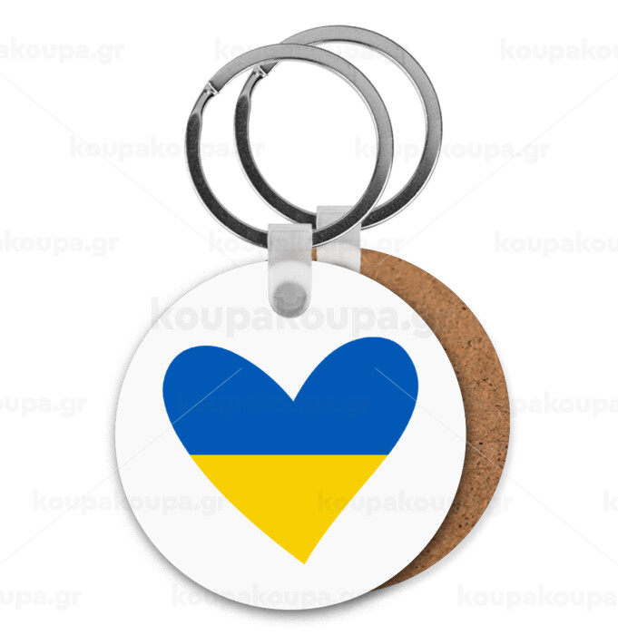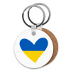 UKRAINE heart, Μπρελόκ Ξύλινο στρογγυλό MDF Φ5cm