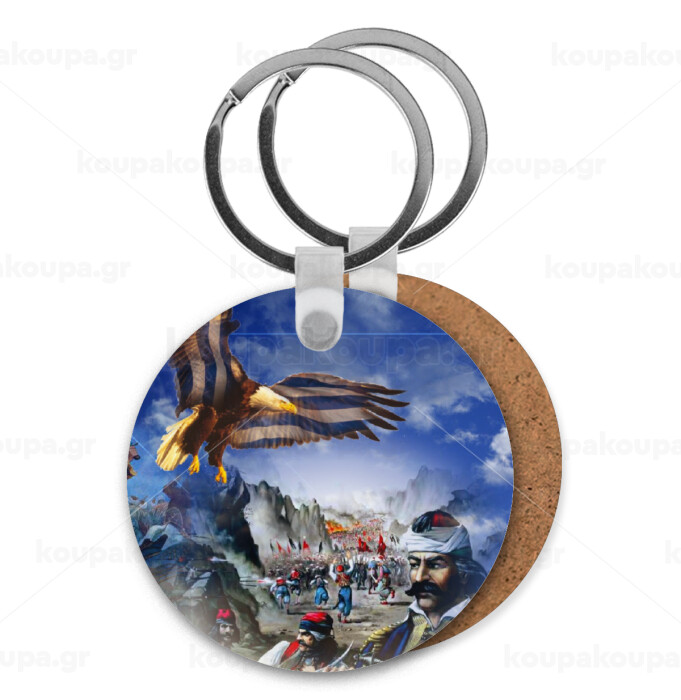 25η Μαρτίου 1821 Εθνική Επέτειος, Μπρελόκ Ξύλινο στρογγυλό MDF Φ5cm
