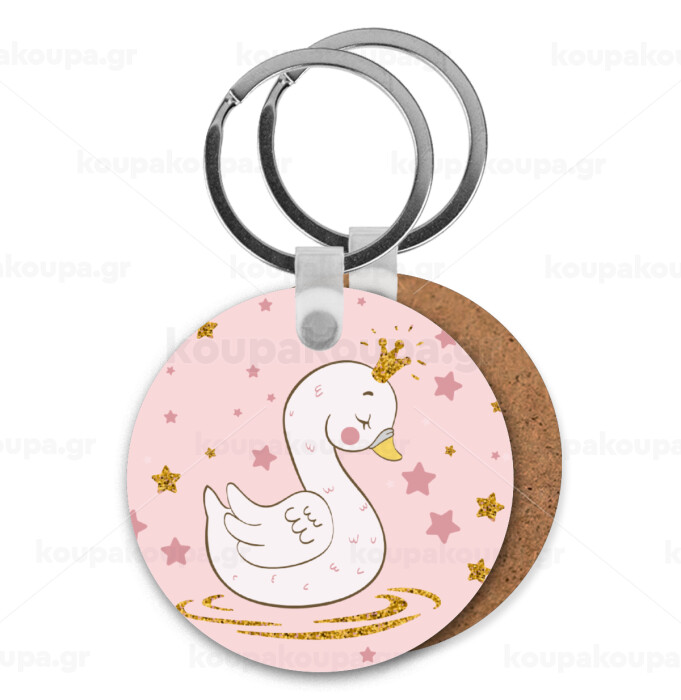 Crowned swan, Μπρελόκ Ξύλινο στρογγυλό MDF Φ5cm