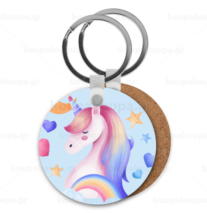 Cute unicorn, Μπρελόκ Ξύλινο στρογγυλό MDF Φ5cm