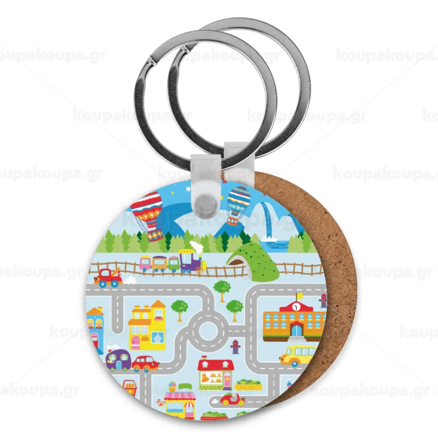 City road track maps, Μπρελόκ Ξύλινο στρογγυλό MDF Φ5cm