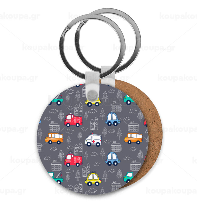 Hand drawn childish set with cars, Μπρελόκ Ξύλινο στρογγυλό MDF Φ5cm