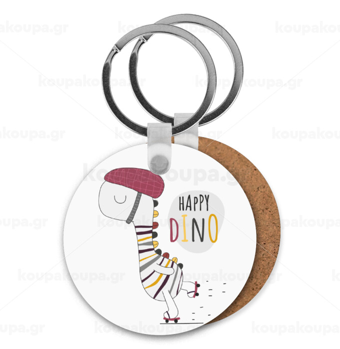 Happy Dino, Μπρελόκ Ξύλινο στρογγυλό MDF Φ5cm