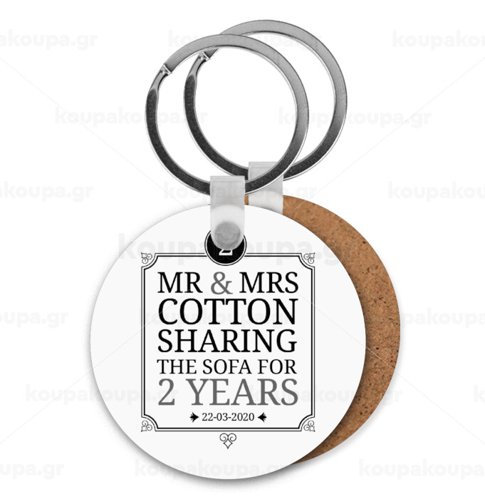 Mr & Mrs Sharing the sofa, Μπρελόκ Ξύλινο στρογγυλό MDF Φ5cm