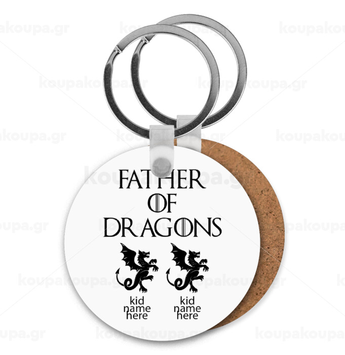 GOT, Father of Dragons (με ονόματα παιδικά), Μπρελόκ Ξύλινο στρογγυλό MDF Φ5cm