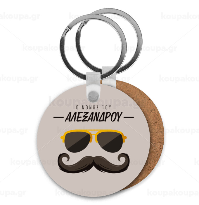 Ο νονός μου, μουστάκι με γυαλιά, Μπρελόκ Ξύλινο στρογγυλό MDF Φ5cm
