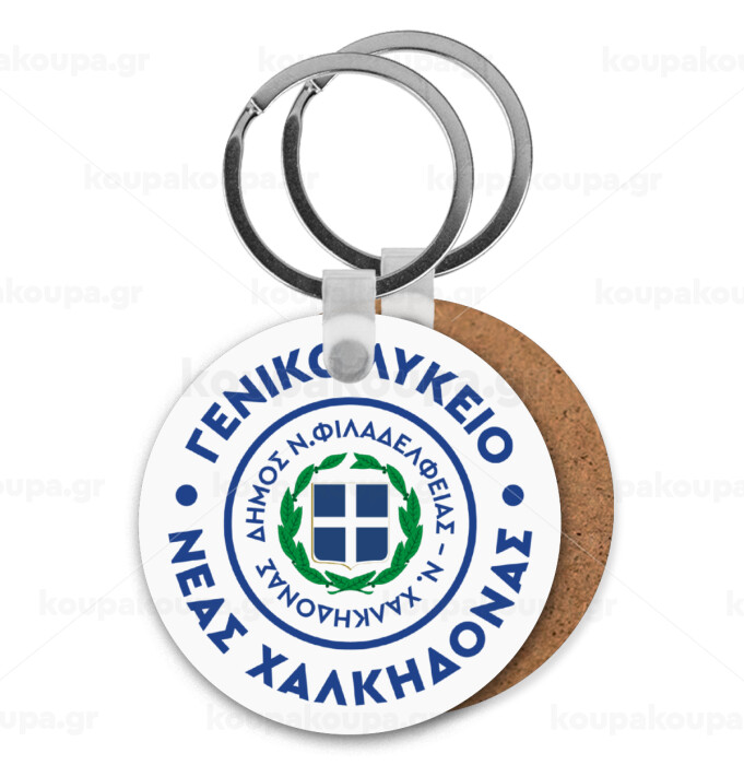 Έμβλημα Σχολικό με δάφνες, Μπρελόκ Ξύλινο στρογγυλό MDF Φ5cm