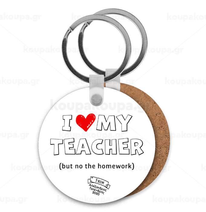 i love my teacher but no the homework outline, Μπρελόκ Ξύλινο στρογγυλό MDF Φ5cm