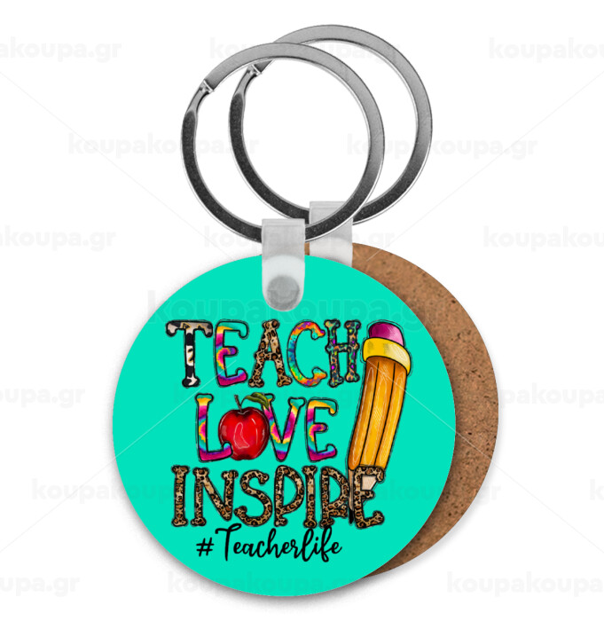 Teach, Love, Inspire, Μπρελόκ Ξύλινο στρογγυλό MDF Φ5cm