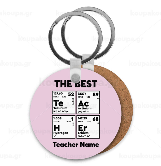 THE BEST Teacher chemical symbols, Μπρελόκ Ξύλινο στρογγυλό MDF Φ5cm